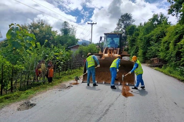 瑯勃拉邦海螺至13號(hào)公路之間有21公里的社會(huì)道路,在這條路上,經(jīng)常可以看見身著“海螺藍(lán)”的員工和帶有“CONCH”標(biāo)志的大型機(jī)械在作業(yè)。老撾作為以農(nóng)業(yè)為主的國家,工業(yè)、制造業(yè)以及基礎(chǔ)建設(shè)相對(duì)薄弱,瑯勃拉邦海螺積極履行社會(huì)責(zé)任,每年對(duì)該道路進(jìn)行修繕,僅其中一次道路修繕,就出動(dòng)人員229班時(shí),反鏟、裝載機(jī)、礦車等148臺(tái)班,使用碎石等物料2449噸,柴油5300余升,歷時(shí)33天,累計(jì)修整路面2100平方米,極大方便了沿線運(yùn)輸車輛和人員通行。
