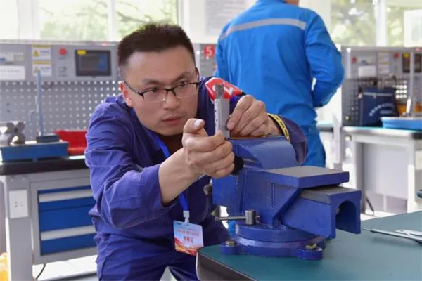 鉗工選手不斷調(diào)整著模具擺放位置,認(rèn)真進(jìn)行數(shù)據(jù)測(cè)量,完成對(duì)板的劃線、制作、裝配與檢驗(yàn)。