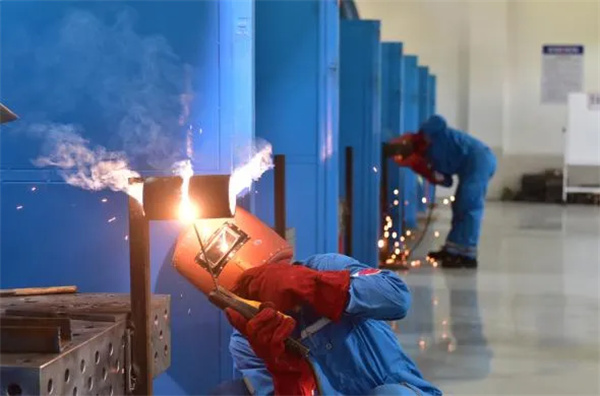 在焊工比賽現(xiàn)場(chǎng),焊花飛舞、弧光閃耀,在“鋼鐵裁縫”的焊槍下,工件被嚴(yán)絲合縫地焊接成型。