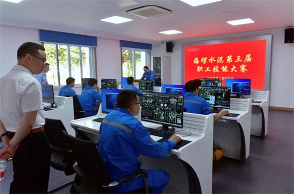 在水泥操作工比賽現(xiàn)場(chǎng),選手們嚴(yán)謹(jǐn)?shù)夭僮髦M系統(tǒng),逐步把各項(xiàng)參數(shù)調(diào)至最優(yōu)值。