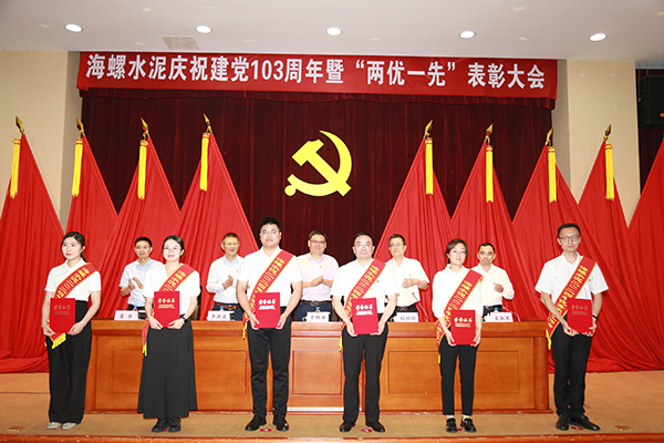 6月27日下午,海螺水泥以現(xiàn)場會+視頻會相結(jié)合的方式,召開了慶祝建黨103周年暨“兩優(yōu)一先”表彰大會,隆重表彰了一批在推動公司高質(zhì)量發(fā)展中涌現(xiàn)出的先進集體和優(yōu)秀個人,激勵廣大黨員和干部職工堅定信心、攻堅克難,為完成年度目標任務(wù),助推集團實現(xiàn)新“雙一”目標貢獻更大力量。