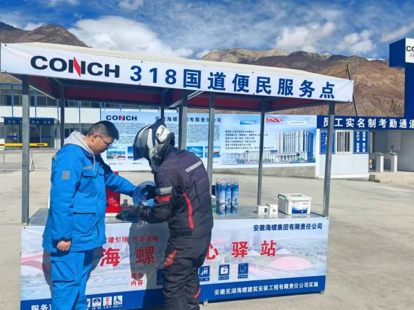 海螺建安依托承建的白瑪鎮(zhèn)珠巴村鄉(xiāng)村振興物資中轉(zhuǎn)站項目部,在318國道西藏八宿段建設(shè)了海螺愛心驛站,免費向游客提供休憩、飲用水、吸氧、醫(yī)療急救用品、手機充電、如廁等暖心服務(wù)。