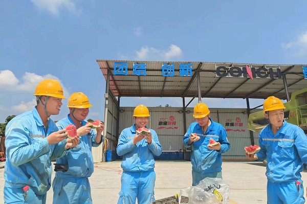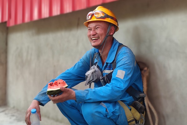 搶進(jìn)度、穩(wěn)運(yùn)行、抓生產(chǎn),這群可愛可敬的身影穿梭于生產(chǎn)一線,陽(yáng)光照耀下,他們面龐上的汗水愈發(fā)顯得晶瑩。一心抓安全生產(chǎn)的他們,也同樣需要得到保護(hù),從西瓜、冰鎮(zhèn)綠豆湯、酸梅湯,到仁丹、十滴水,鏡頭下,接過(guò)防暑降溫品的他們,露出了質(zhì)樸真誠(chéng)的笑容,這就是夏日里海螺水泥一線員工群像。