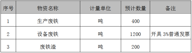 根據(jù)《廢舊物資管理辦法》,為規(guī)范廢舊物資出售管理,保證廢舊物資出售過程的公開、公平、公正,我公司擬將無法修復(fù)、無利用價值以及報廢的廢舊物資進(jìn)行公開招標(biāo)出售,誠邀經(jīng)營資質(zhì)合格的單位參加投標(biāo),現(xiàn)將有關(guān)事項公告如下: