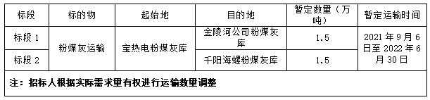 1.標(biāo)的物:大唐寶雞熱電廠(chǎng)粉煤灰運(yùn)輸。