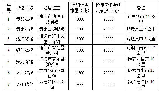 貴州區(qū)域海螺水泥7家子公司(貴陽(yáng)海螺、貴定海螺、遵義海螺、水城海螺、六礦瑞安、安龍海螺、銅仁海螺)擬對(duì)2021-2022年度氨水采購(gòu)進(jìn)行聯(lián)合招標(biāo),為進(jìn)一步體現(xiàn)公開、公平、公正、擇優(yōu)的原則,拓寬采購(gòu)渠道,保證采購(gòu)質(zhì)量,現(xiàn)將招標(biāo)采購(gòu)信息發(fā)布如下: