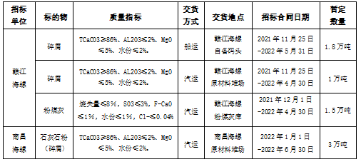 根據(jù)贛江、南昌海螺生產(chǎn)需求,計劃對碎屑、粉煤灰進行公開招標,選定中標人,為體現(xiàn)公平、公正、公開的原則,拓寬采購渠道,現(xiàn)將招標相關事宜公告如下: