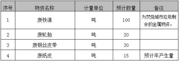 ????備注:a、自備吊車、叉車、鏟車、運輸車輛、裝車工具等,包含清理場地垃圾費用。b、廢紙皮物資為年度出售計劃量,以實際產(chǎn)生數(shù)量為準(zhǔn),出售方根據(jù)現(xiàn)場產(chǎn)生量聯(lián)系回收方派車回收。