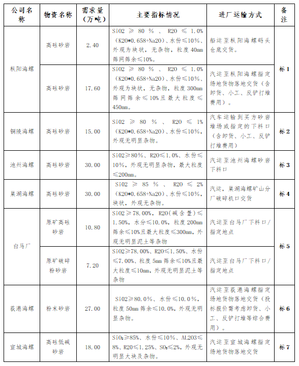 2.本次投標除銅陵海螺接受含鵝卵石的物料外,池州、樅陽、巢湖、荻港、白馬、宣城海螺所有報價均不接受含鵝卵石物料。