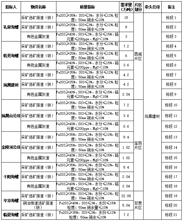 說明:1.其中采礦選礦廢渣為原礦資源,不允許摻配含鐵工業(yè)廢渣,對于違約情形,按照合同約定處罰。