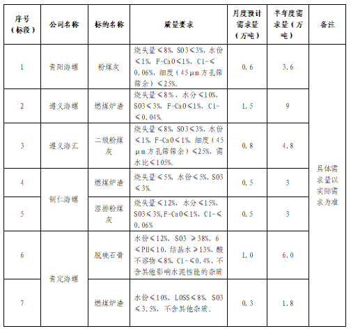 海螺水泥貴州區(qū)域擬對2022年上半年水泥生產(chǎn)用粉煤灰、燃煤爐渣、脫硫石膏進(jìn)行公開招標(biāo),選定中標(biāo)單位,現(xiàn)將相關(guān)招標(biāo)事宜公示如下: