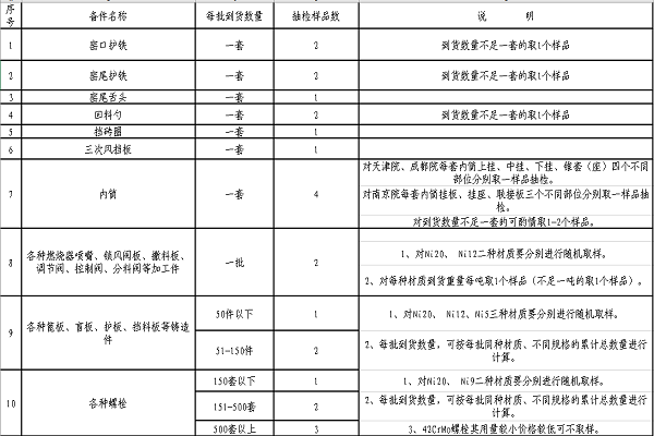 5.5對于內(nèi)筒的取樣、抽查,須對上掛、中掛、下掛、錐套、聯(lián)接板等幾個(gè)不同部位分別進(jìn)行取樣、抽檢(聯(lián)接螺栓按螺栓品種取樣),以驗(yàn)證其一套組件合格性如何;