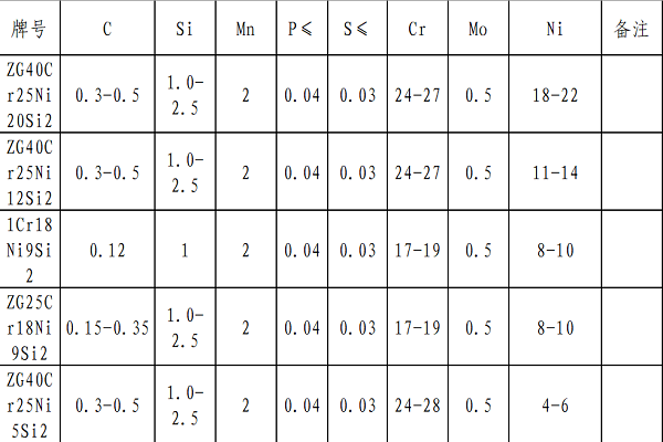 注:根據(jù)相關(guān)設(shè)計(jì)院設(shè)計(jì)標(biāo)準(zhǔn)并考慮到國內(nèi)耐熱鋼廠家實(shí)際生產(chǎn)情況,其中Ni20按照18-22執(zhí)行。