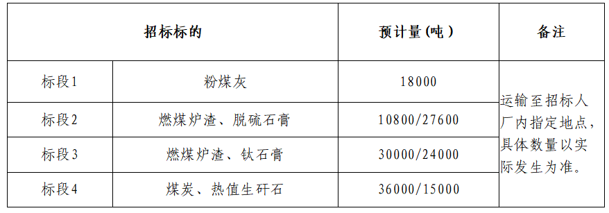 3.參與川維化工粉煤灰(標(biāo)段1)運(yùn)輸投標(biāo)人車輛不得少于5輛<含>罐車自卸車輛;參與川維化工燃煤爐渣、脫硫石膏(標(biāo)段2)運(yùn)輸投標(biāo)人車輛不得少于5輛<含>散貨自卸車;參與攀鋼鈦業(yè)燃煤爐渣、鈦石膏(標(biāo)段3)運(yùn)輸投標(biāo)人車輛不得少于5輛<含>散貨自卸車;參與華榮能源南二井礦點(diǎn)煤炭、熱值生矸石(標(biāo)段4)運(yùn)輸投標(biāo)人車輛不得少于5輛<含>散貨自卸車。以上不同標(biāo)段車輛信息應(yīng)分開(kāi)提供,且不得重復(fù),并24小時(shí)滿足招標(biāo)人運(yùn)輸要求,不能影響招標(biāo)人正常的生產(chǎn)經(jīng)營(yíng)活動(dòng)。