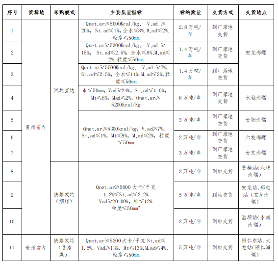2.投標人所提供礦點煤炭生產(chǎn)能力30萬噸/年以上(含30萬噸/年),礦點屬于貴州省內(nèi)資源;