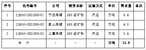 3、采購數(shù)量:礦粉合計(jì)15.8萬噸。