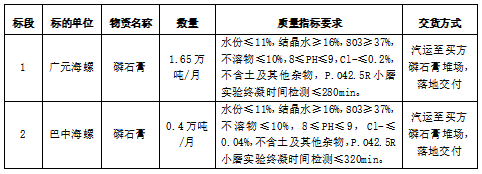 3.投標報名單位需具有較強的保供能力,其中參與廣元海螺磷石膏的投標渠道月供貨能力不低于0.4萬噸,參與巴中海螺磷石膏的投標渠道月供貨能力不低于0.2萬噸。
