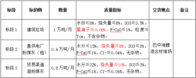 5.投標(biāo)報(bào)名單位需具有較強(qiáng)的保供能力,其中建筑垃圾月供貨能力不低于0.5萬噸;粉煤灰投標(biāo)渠道若為直供,不設(shè)置最低供貨量,若為貿(mào)易渠道,月供貨能力不低于0.3萬噸,且貿(mào)易渠道貨源不能為四川廣旺電力公司嘉川電廠、代池壩電廠和南江煤電公司粉煤灰資源。