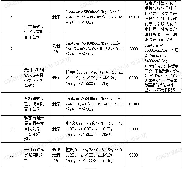 海螺水泥貴州區(qū)域擬對2022年4月21日至2022年5月20日生產(chǎn)用煤炭進行公開招標,選定中標單位,現(xiàn)將相關招標事宜公示如下: