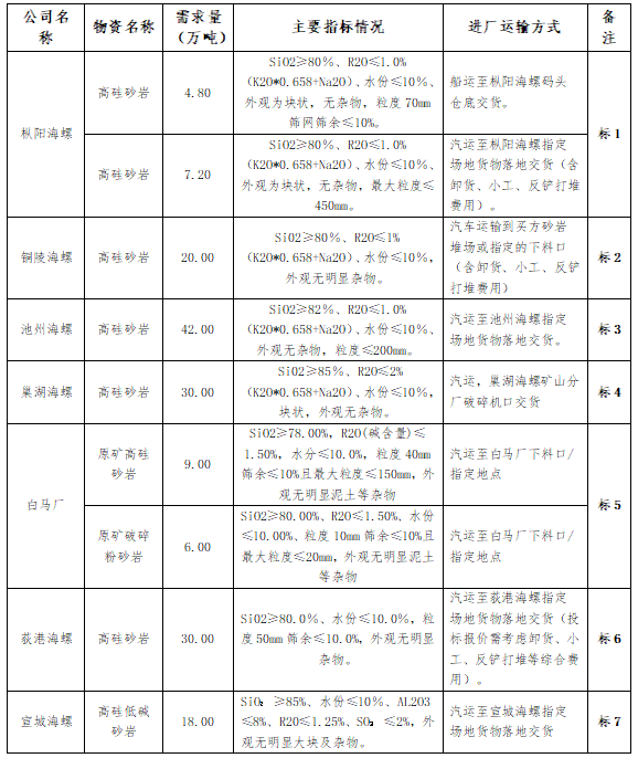 根據(jù)生產(chǎn)需求,本著“公開、公平、公正”的原則,擬對省內(nèi)和皖北區(qū)域部分子公司外購砂巖進(jìn)行公開招標(biāo),歡迎具備條件的單位參加,現(xiàn)將招標(biāo)相關(guān)事宜公告如下: