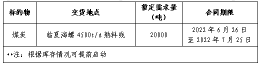為做好我公司2022年煤炭采購工作,滿足生產(chǎn)需要,本著“公開、公平、公正”的原則,擬對煤炭貿(mào)易渠道供貨進行公開招標,現(xiàn)將招標采購信息發(fā)布如下: