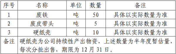 亳州海螺水泥有限責(zé)任公司擬對公司內(nèi)部廢舊物資進行公開招標(biāo),選定中標(biāo)人?,F(xiàn)將相關(guān)事宜公告如下: