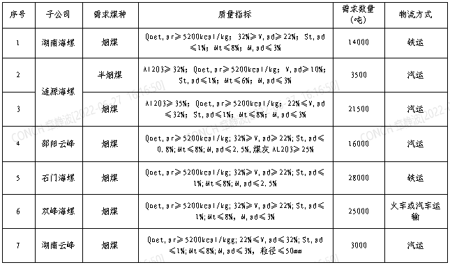 2.各投標單位原則上需具備從2022年7月21日起供貨的能力,其中考慮邵陽云峰煤炭庫容較小,日供邵陽云峰煤炭量原則上需具備在1000噸以上;