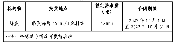 為做好我公司2022年煤炭采購工作,滿足生產需要,本著“公開、公平、公正”的原則,擬對煤炭貿易渠道供貨進行公開招標,現(xiàn)將招標采購信息發(fā)布如下:
