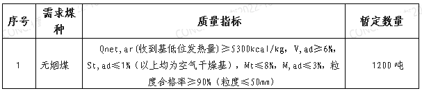 根據(jù)公司生產(chǎn)需求,公司擬對2022年11月份無煙煤進行招標(biāo),選定中標(biāo)人,為體現(xiàn)公平、公正、公開的原則,拓寬采購渠道,現(xiàn)將招標(biāo)相關(guān)事宜公告如下: