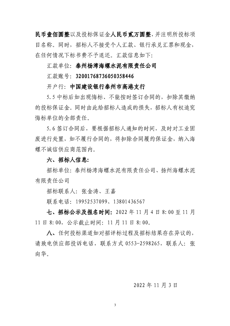 楊灣、揚(yáng)州海螺工業(yè)固廢處置招標(biāo)公示