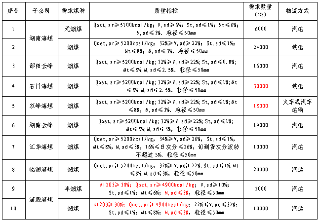 2.各投標(biāo)單位原則上需具備從2022年11月21日起供貨的能力,其中考慮邵陽云峰煤炭庫容較小,日供邵陽云峰煤炭量原則上需具備在1000噸以上;
