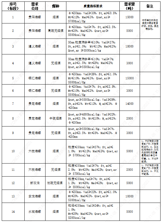 1.煙煤新客戶首次投標(biāo)量不允許超過(guò)3500噸(原則上一個(gè)整列),無(wú)煙煤新客戶首次投標(biāo)量不允許超過(guò)5000噸,且無(wú)論是煙煤還是無(wú)煙煤新客戶均只能投標(biāo)一家海螺公司(2020年10月至2022年10月期間未向海螺水泥貴州區(qū)域形成實(shí)質(zhì)性煙煤、無(wú)煙煤供貨的客戶均視為煙煤、無(wú)煙煤標(biāo)的投標(biāo)新客戶),原則上各標(biāo)段投標(biāo)可供量不得小于3000噸,但考慮貴定海螺本次中硫煙煤標(biāo)段僅招標(biāo)2000噸,貴定海螺中硫煙煤標(biāo)段投標(biāo)可供量不得小于2000噸。六枝海螺本次無(wú)煙煤標(biāo)段僅招標(biāo)2000噸,六枝海螺無(wú)煙煤標(biāo)段投標(biāo)可供量不得小于2000噸。