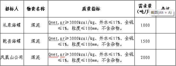 說明:為確保招標(biāo)的公平性、合理性,本次招標(biāo)煤泥指標(biāo)為固定指標(biāo),不允許優(yōu)化調(diào)整。