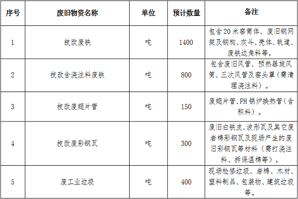 我公司計(jì)劃5月份實(shí)施1#窯綜合能效提升項(xiàng)目,為及時(shí)處置項(xiàng)目產(chǎn)生的廢舊物資,保障項(xiàng)目實(shí)施進(jìn)度受控,同時(shí)積極拓寬出售渠道,提升招標(biāo)效益,確保廢舊物資出售過(guò)程的公開(kāi)、公平、公正,現(xiàn)擬開(kāi)展本次廢舊物資招標(biāo)出售工作,本次招標(biāo)在海螺陽(yáng)光智慧采購(gòu)平臺(tái)進(jìn)行公開(kāi)招標(biāo)(http://srm.chinaconch.com/oauth/),現(xiàn)將招標(biāo)信息公示如下: