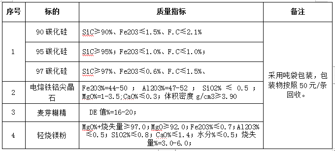1.1招標(biāo)名稱:安徽海螺暹羅耐火材料有限公司部分原材料招標(biāo)。