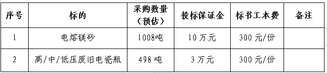 根據(jù)本公司2023年3-4季度耐火磚產品生產計劃,結合前期招標報名及開標情況,為確保生產所需原料及時采購進廠。現(xiàn)對電熔鎂砂和廢舊電瓷瓶原材料,本著“公開、公平、公正、透明”的原則再次公開招標,誠邀經營資質能力較好、保供和服務能力較強的生產型企業(yè)參加投標。現(xiàn)就招標相關事項請示如下: