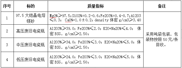 注:上述鎂質原材料必須為天然礦石制品,不得使用浮選等任何提純工藝生產的輕燒粉作為原材料。