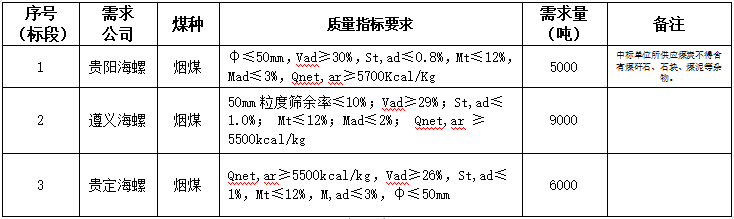 海螺水泥貴州區(qū)域擬對(duì)2023年8月21日至2023年9月20日生產(chǎn)用煤炭進(jìn)行公開(kāi)招標(biāo),選定中標(biāo)單位,現(xiàn)將相關(guān)招標(biāo)事宜公示如下: