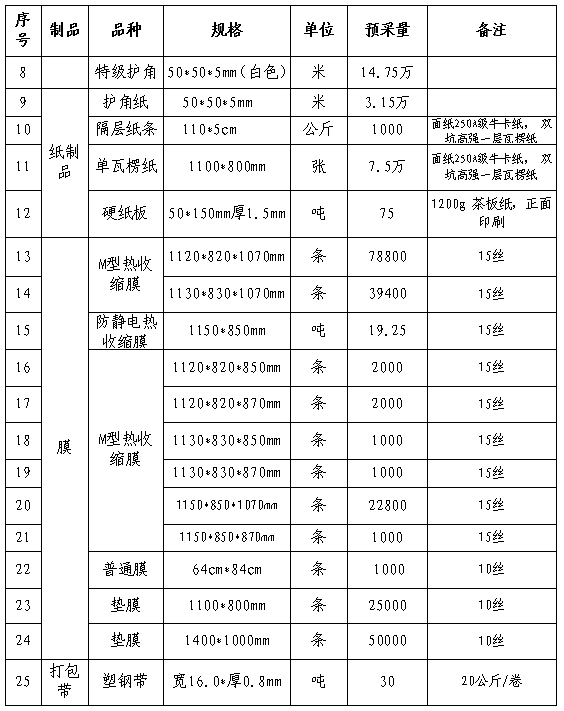 根據(jù)公司生產(chǎn)經(jīng)營計劃,為確保2023-2024年度產(chǎn)品包裝需求;現(xiàn)本著“公開、公平、公正、透明”的原則公開招標,誠邀經(jīng)營能力較好、產(chǎn)品質(zhì)量合格、保供和服務(wù)能力較強的包裝材料生產(chǎn)單位參加投標,現(xiàn)將有關(guān)事項公告如下: