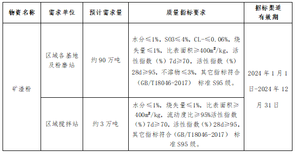 2.招標(biāo)方式:采取公開(kāi)招標(biāo)方式,按礦渣粉質(zhì)量指標(biāo)要求確定區(qū)域礦渣粉中標(biāo)的供貨入圍渠道。
