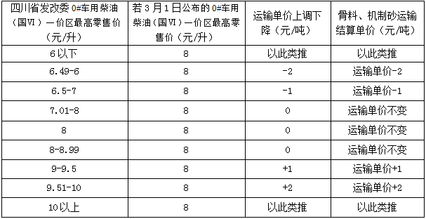3.若1.5元/升<漲跌幅度≤2元升,運(yùn)輸單價上調(diào)或下降2元/噸,以次類推。