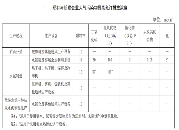 廢氣污染物排放執(zhí)行安徽省地方標(biāo)準(zhǔn)《水泥工業(yè)大氣污染物排放標(biāo)準(zhǔn)》(DB34/3576-2020)中規(guī)定限值。