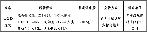 為進(jìn)一步提升二級(jí)粉煤灰采購(gòu)招標(biāo)的公平、公正、公開(kāi)透明性,根據(jù)巴中海螺建材二級(jí)粉煤灰需求,現(xiàn)組織開(kāi)展二級(jí)粉煤灰公開(kāi)招標(biāo),特將招標(biāo)事宜公告如下: