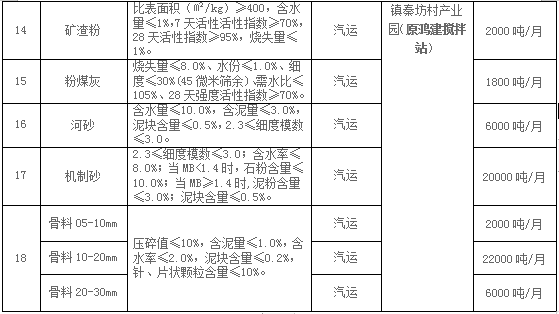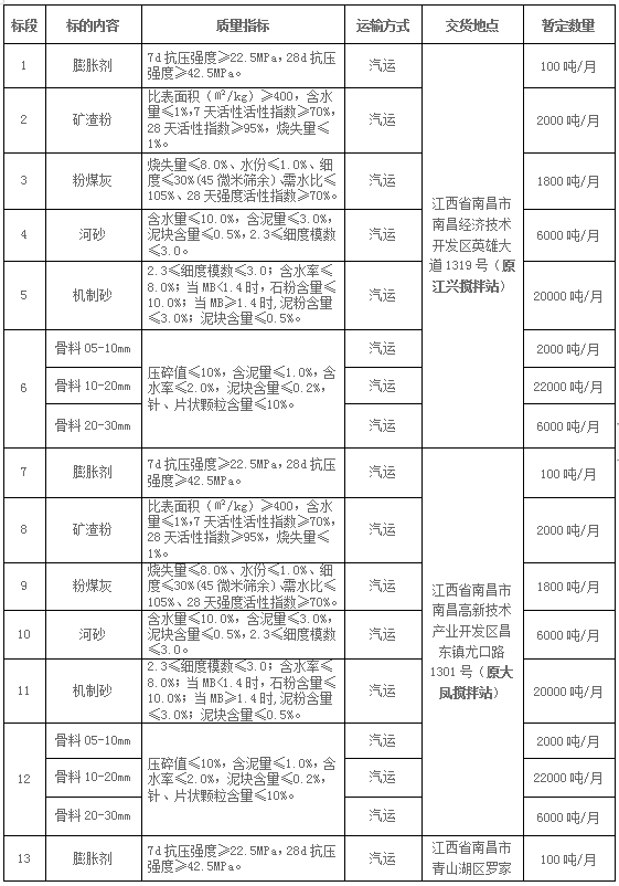 1.標(biāo)的內(nèi)容:膨脹劑、礦渣粉、粉煤灰(二級灰)、河砂、機制砂、骨料。