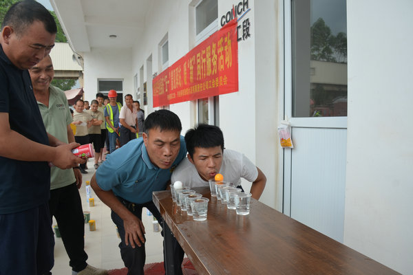 吹乒乓球過水杯項(xiàng)目同樣人氣爆棚。參賽者們鼓足腮幫子,小心翼翼地將乒乓球從第一個(gè)杯子吹向第六個(gè)杯子,眼睛緊緊盯著乒乓球,生怕它跳過杯子或滑落至桌子上。圍觀的司機(jī)們紛紛為參賽者加油助威,現(xiàn)場氣氛熱烈而歡快。?
