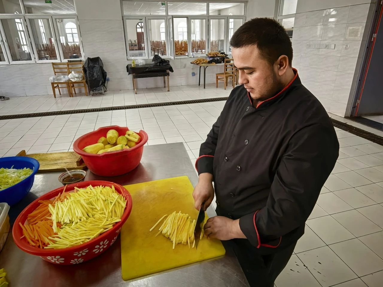 我叫YULDASHBOEV BUNYODBEK(冬唷德別克),是安集延海螺的一名廚師。每天我都和鍋碗瓢盆打交道,酸甜苦辣咸各種滋味都在案板和灶臺上完成。在做好烏茲傳統(tǒng)菜肴的同時,我還時常學習中國菜肴的制作方法,比如饅頭、餃子和辣椒炒肉,等等。每次看到大家吃的很開心的樣子,我心里就特別的滿足,這也是我工作的重要動力。今后,我還將持續(xù)努力,為大家?guī)砀嗟拿牢丁?/span>