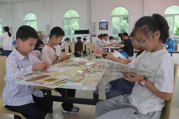 活動(dòng)現(xiàn)場(chǎng),端午民俗體驗(yàn)區(qū)人氣爆棚。在龍舟拼圖區(qū),五顏六色的拼板、道具和顏料激發(fā)了大家的創(chuàng)作熱情,孩子們?cè)诩议L(zhǎng)的指導(dǎo)下,制作出一個(gè)個(gè)精美的龍舟模型。看著自己親手制作的龍舟模型,孩子們的臉上洋溢著自豪的笑容。