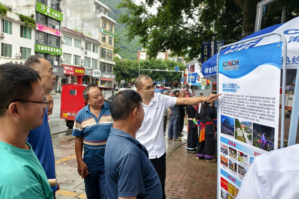 活動(dòng)現(xiàn)場(chǎng),鮮明的橫幅與精美的海報(bào)在雨中格外醒目,迅速抓住了過往行人的眼球。工作人員熱情地向圍觀的群眾發(fā)放定制宣傳手冊(cè)和單頁,圖文并茂地詳細(xì)展示了海螺水泥的各類產(chǎn)品信息。很快,銷售處與生產(chǎn)品質(zhì)處聯(lián)合派出的專業(yè)技術(shù)團(tuán)隊(duì)便被市民們團(tuán)團(tuán)圍住。