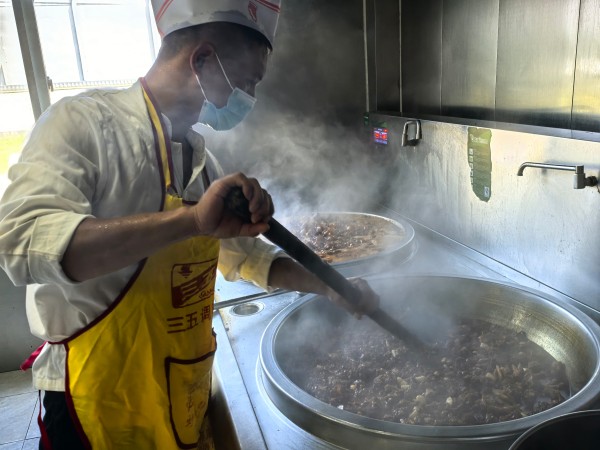 油鍋里的青煙模糊了眼睛,蒸箱噴出的熱浪讓呼吸變得滾燙。值班廚師每天早上6點(diǎn)在晨光里驗(yàn)菜,切配組日均處理1000多斤食材,炒菜組每小時(shí)翻動(dòng)鐵鍋1000多次,面點(diǎn)組每天制作包子500個(gè)……這些數(shù)字背后,是廚師團(tuán)隊(duì)對(duì)"舌尖安全"的鄭重承諾。