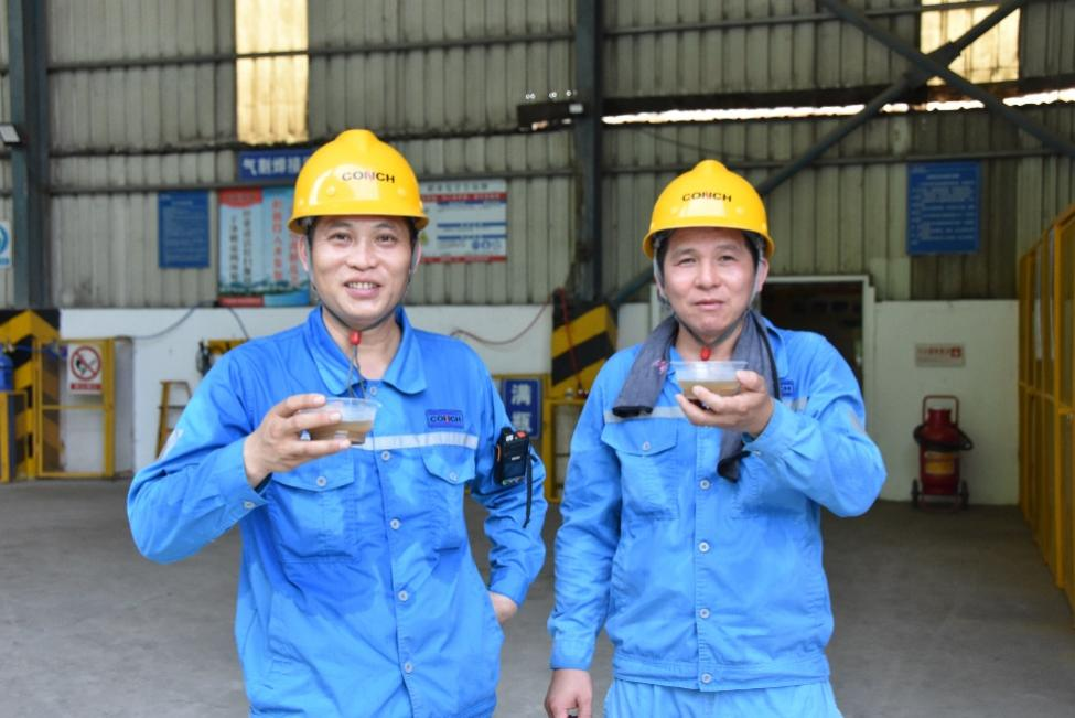 二線維修現(xiàn)場(chǎng)指揮部,忙碌一陣的兩位員工指尖捏著冰爽冰棍。勞保服被汗水浸得微微發(fā)潮,明黃色安全帽下,是他們專注又略帶疲憊的臉龐。冰涼冰棍剛?cè)肟?,清甜涼意瞬間席卷全身,高溫帶來(lái)的疲憊與暑意仿佛被按下“消除鍵”。企業(yè)的貼心關(guān)懷化作舌尖清甜,讓他們帶著更飽滿的精神,為生產(chǎn)穩(wěn)定運(yùn)行全力以赴。